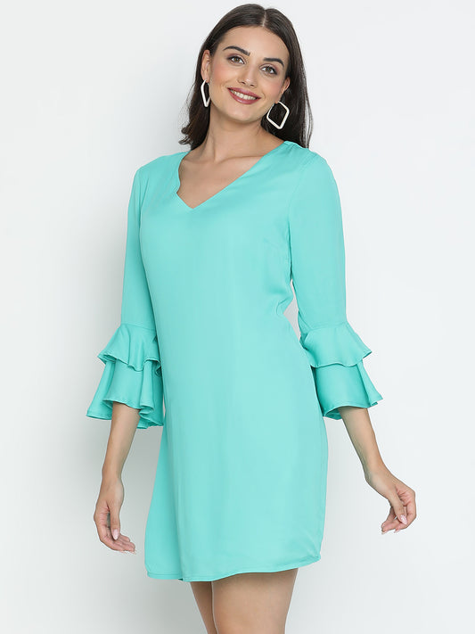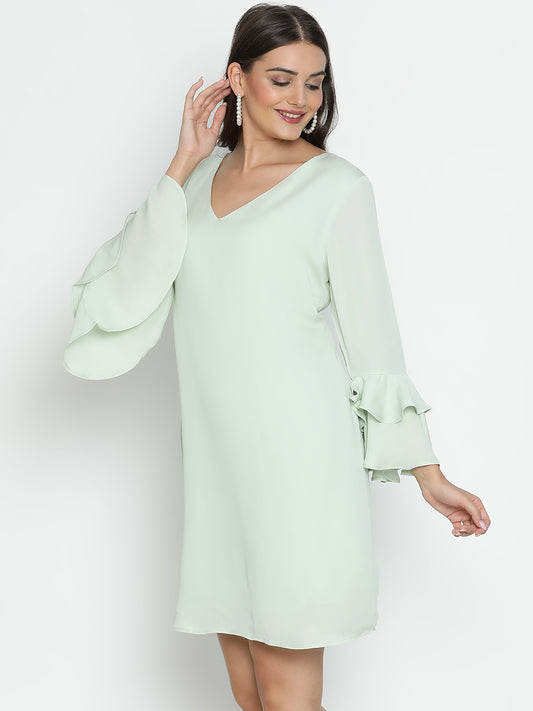 DRAAX FASHIONS महिलाओं के लिए फुल स्लीव्स वी-नेक मिंट ग्रीन ड्रेस