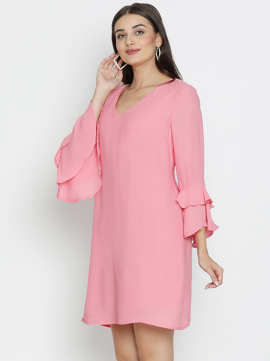 DRAAX FASHIONS महिलाओं के लिए फुल स्लीव्स वी-नेक पिंक ड्रेस