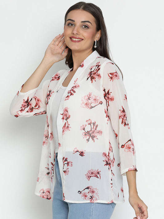 DRAAX FASHIONS महिलाओं के लिए सफ़ेद फ्लोरल फुल स्लीव्स लॉन्ग श्रग